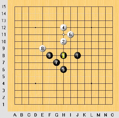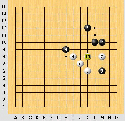 Alicecooper writes that he knew Kristof's addition of two stones, and this makes me wonder why it took two long minutes for Alicecooper to play 6-J7, the move he implies he knew. On my laptop, it takes about 1.5 minutes for Yixin to suggest this move with a score of 515, which almost definitely means a sure win.